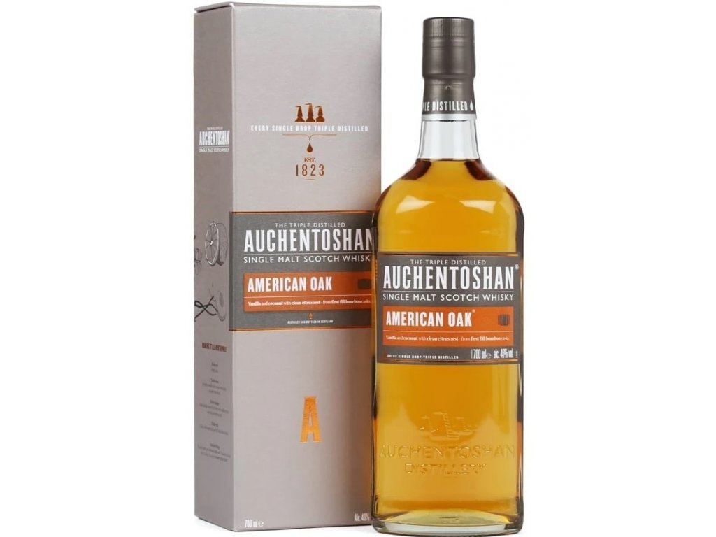 Core range z palírny Auchentoshan. Trojnásobně destilovaná a zrající pouze v sudech z amerického bourbonu. Výsledek: Lowland Single Malt Whisky se sladkou vůní vanilky a kokosu, spolu s charakteristickou jemnou a delikátní chutí Auchentoshan. Jako každá whisky Auchentoshan, i americký dub je opravdu univerzální Single Malt.