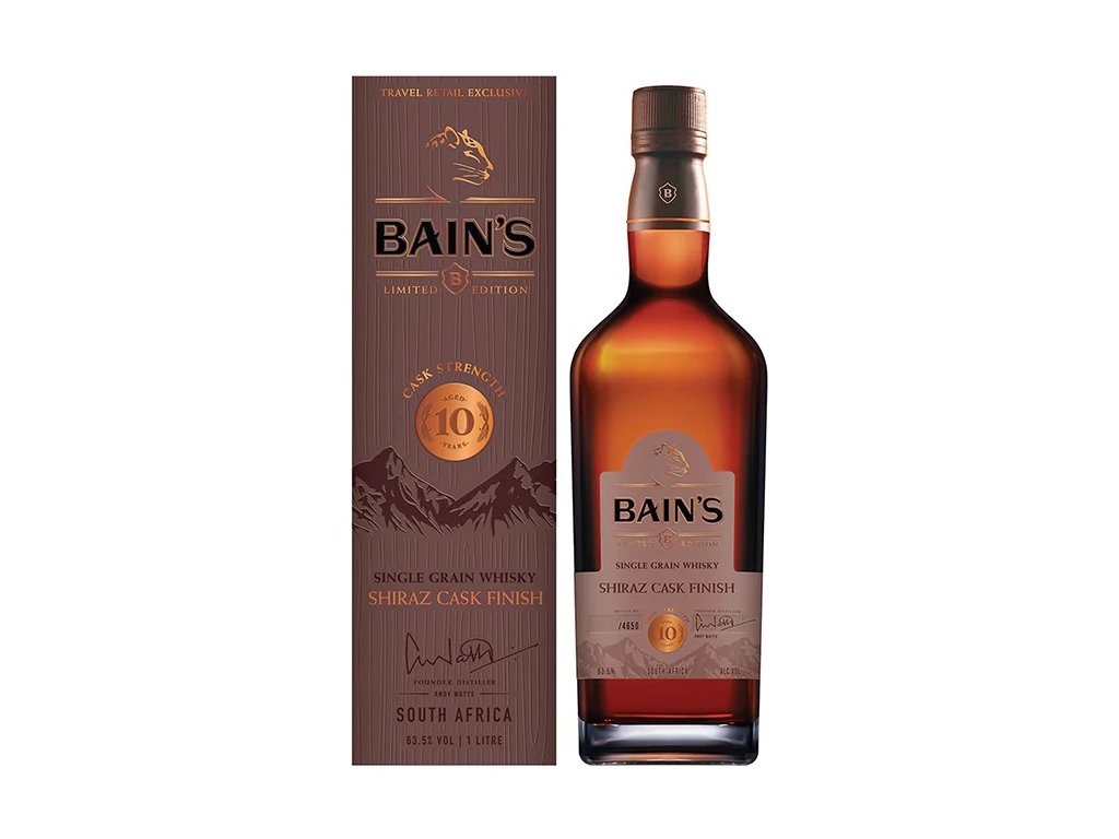 Bain's Cape Mountains Whisky 10-Year-Old Shiraz cask finish je aromatická, plná whisky vydaná v sudové síle, aby ukázala kreativitu, kterou náš zakladatel destilér přinesl do světa whisky.