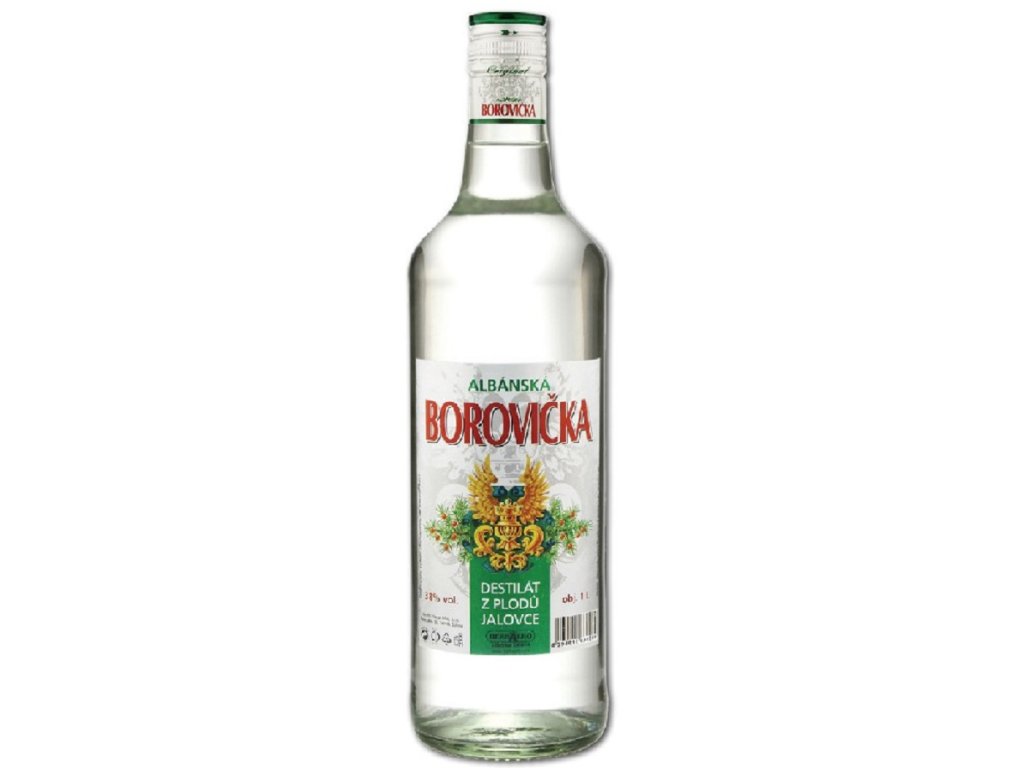 Borovička mimořádné kvality pověstné v celém kraji s pravým jalovcovým destilátem z jalovčinek česaných z keřů albánských hor, křišťálově čisté vody a velejemného lihu. Doporučujeme!