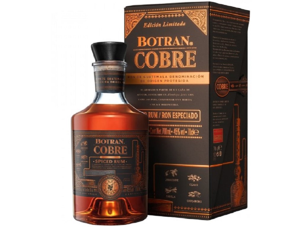 Unikátní chuť této limitované edice vzniká destilací v měděných kotlích, uvnitř kterých je umístěn košík s kardamomem, skořicí, zázvorem a hřebíčkem. Tento proces, během kterého se do páry dostávají tóny koření, dává rumu Botran Cobre nejen jeho jméno („cobre“ ve španělštině znamená „měď“), ale také jeho charakter. Po destilaci rum zraje systémem solera až 20 let. Nejmladší rumy přispívají kořeněností, zatímco ty nejstarší, zrající v sudech po portském, dodávají jedinečný charakter. Komplexní chuť odkrývá skvělý poměr sladkosti a kořeněnosti, zůstává dlouho na patře a umožňuje tak vychutnat si tóny použitého koření. Rum neobsahuje přidaný cukr ani jiná sladidla.Doplňkové parametry