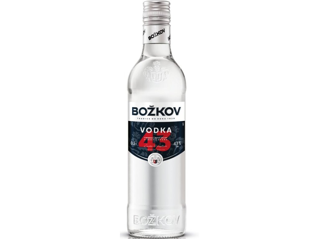Božkov Vodka 43% je extra silná vodka, která vzniká kombinací nejjemnějšího lihu a speciálně filtrované měkké plzeňské vody.