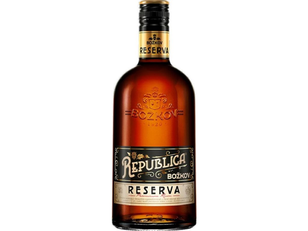 Božkov Republica Reserva vyniká chutí, vůní i barvou a to díky výběru kvalitních třtinových destilátů z Nikaraguy, Barbadosu, Dominikánské republiky, Trinidadu, Guyany a Jamajky, z nichž některé zrají v dubových sudech až 12 let. V chuti objevíte cukrovou třtinu, fíky a pomeranče s mírným dubovým závěrem. V aroma se mísí tóny sušených švestek, exotického ovoce, kávy a karamelu. Dlouhé zrání v sudech otisklo rumu tmavě jantarovou barvou.