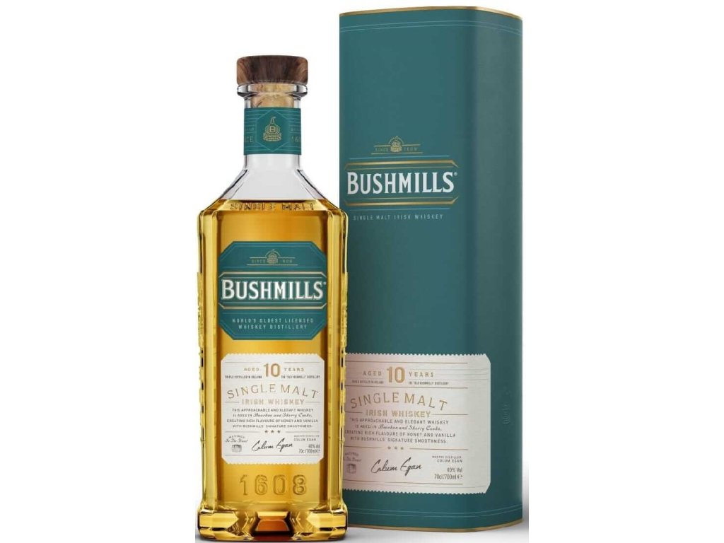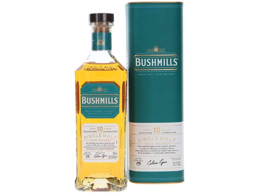Irská whiskey Bushmills se vyrábí v nejstarší stále fungující palírně v Irsku. Díky třístupňové destilaci sladového ječmene , který zraje 10 let v převážně amerických dubových sudech, se vyznačuje jemnou chutí, která je zbavena veškerých nežádoucích příměsí do surového produktu. Zároveň i vůně, která zcela postrádá stopy kouře.