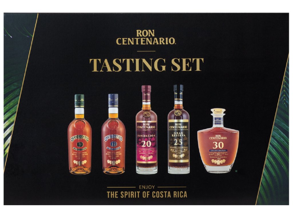 Speciální edice degustačních miniatur značky Centenario. V setu najdete tyto varianty: 9 Years Old Conmemorativo, 12 Yeras Old Gran Legado, 20 Years Old Fundación, 25 Years Old Gran Reserva a exkluzivní blend 30 Years Old Edición Limitada. Centenario je kostarická špička rumů světové kvality s tradicí více než 50 let. Rumům dodává specifickou chuť a charakter klasické staření nebo staření systémem solera v sudech po whisky.Doplňkové parametry