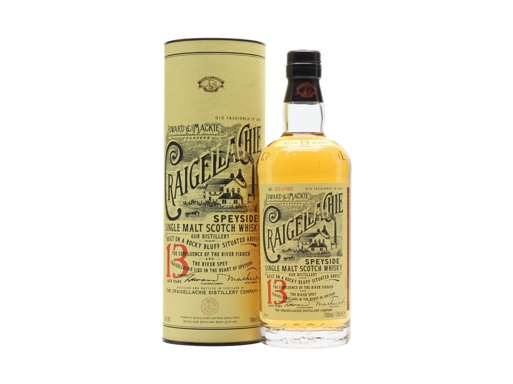 Palírna Craigellachie je známá pro své whisky s vydatným charakterem. Speciálně tato 13 ti letá whisky má aroma citrusových plodů, silnou krémovou až olejovou chuť s příchutí skořice a ovocných bonbónů. Závěr je dlouhý a čistý.
