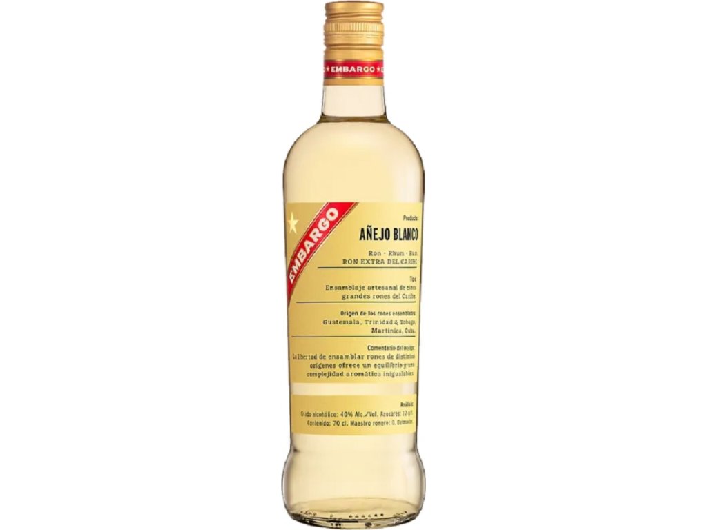 Bílý rum z řady Embargo je ve skutečnosti krátce stařený blend pěti rumů. To rumu dává velmi světlý zlatavý odstín a v chuti v lehké tóny dubu. Rum Agricole je původem z Martiniku a další čtyři melasové rumy pocházejí z Kuby, Trinidadu, Tobaga a Guatemaly. Výsledkem je komplexní rum s výjimečnou rovnováhou. Výborně se hodí do všech rumových koktejlů.Doplňkové parametry