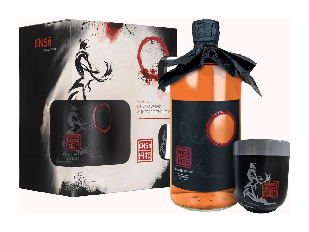 Novinka, dárkové balení v boxu se dvěma keramickými pohárky. ENSO je japonská ručně vyráběná blended whisky metodou pot still, která se finálně míchá v městečku Kiyokawa v prefektuře Kanagawa. Ve vůni nalezneme tradiční aroma vanilky a karamelu. Tóny čerstvého dřeva a koření v chuti odráží zrání v sudech z amerického dubu. Lehký závěr s ovocně-květinovým podtextem.