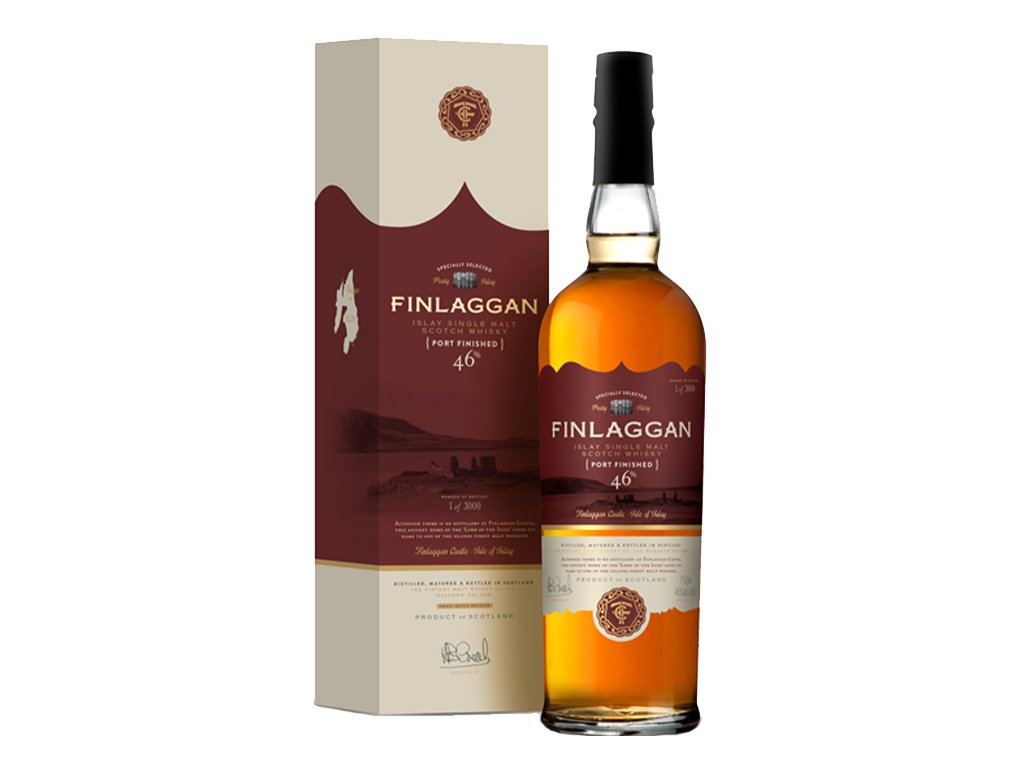 FINLAGGAN SINGLE MALT SKOTSKÁ WHISKY ISLAY S DOKONČENÍM V SUDU PO PORTSKÉM.