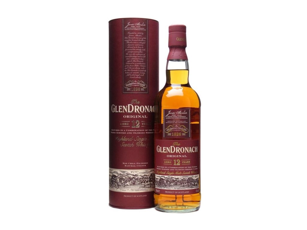 Glendronach 12 YO Original je výjimečná whisky. Stejně jako v roce 1826 i dnes v GlenDronach Distillery trpělivě zraje v sudech po sherry, které pomáhají vytvořit její jedinečný „sherried“ styl, který po staletí proslavil GlenDronach na celém světě. Glendronach 12 YO má příjemně nasládlou vůni pomerančové kůry a vanilky s nádechem zázvoru a dubového dřeva. V ústech je hřejivá a plná, bohatá nasládlost sherry se slabým rozinkovým připomenutím a lehce pikantní oříškově dubový závěr nabízí jedno velké mrazivé pokušení. Zraje v nejlepších španělských sudech po Pedro Ximenez a Sherry Oloroso. Obsah alkoholu 40%.Doplňkové parametry