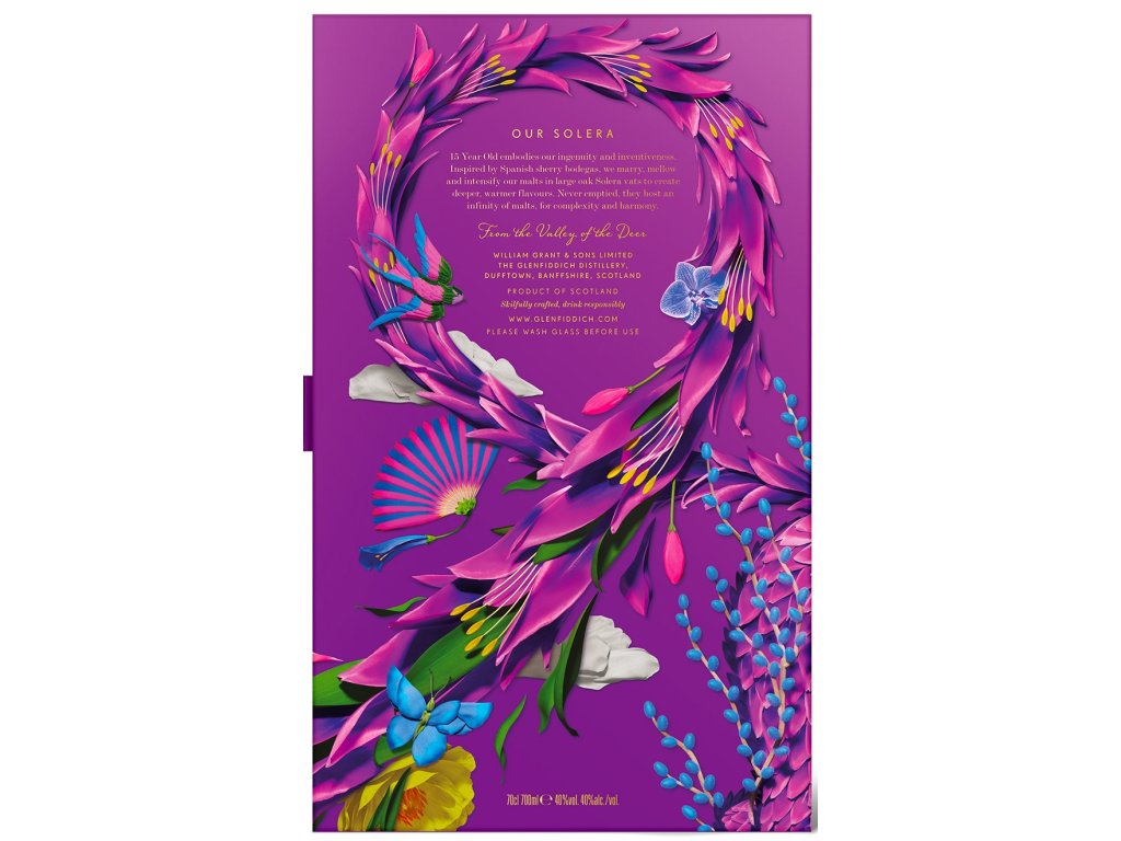 Tato limitovaná edice spojuje mistrovství výroby whisky z palírny Glenfiddich v Speyside s uměleckým světem – lahev i balení vyšperkoval kanadsko-japonský umělec Raku?Inoue, jenž vyobrazil symbol jelena značky složeného z přírodních květin a listů.
