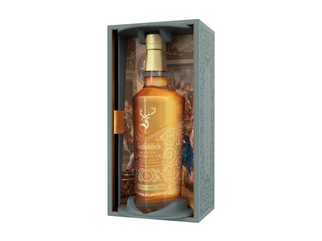 Glenfiddich 26 Year Old Grande Couronne. Tato jedinečná single malt whisky si musela počkat celých 26 let na to, aby mohla dozrát v sudech po vzácném francouzském koňaku.