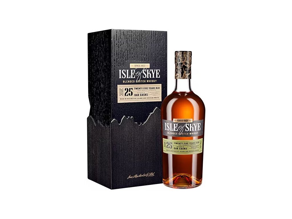 Isle of Skye 25yo blended scotch whisky od Ian Macleod, je míchána z whisky ze Speyside a Island.