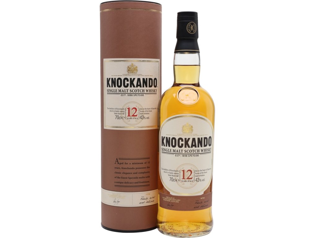 Knockando 12 yo má ovocnou a kořeněnou vůni. Toto aroma je zaobleno přídechem vanilky. V chuti vychází najevo jasný sladový tón, zrovna tak jako vanilkový tón, který byl patrný již ve vůni. K tomu se přidružuje koření a lískové oříšky. V příjemně suchém dozvuku se ukazuje whisky jako obdivuhodně měkká s lehkým vlivem karamelu. Palírna Knockando leží na levém břehu řeky Spey a je ukryta v malém údolí nedaleko destilerie Tamdhu. V období whisky-boomu postavil destilerii v roce 1898 John Thomson. V roce 1904 ji převzal Gilbey. Roku 1962, při sloučení Gilbey a J&B v IDV, se znovu změnilo jméno majitele. Až do roku 1977 byli nositeli licence Justerini & Brooks a byli to také oni, kdo ji rozšířil na čtyři destilační kotle v roce 1969. Dnes patří k velkému koncernu Diageo. Styl této whisky je velmi elegantní a hebký. Je oblíbená jako aperitiv.Doplňkové parametry