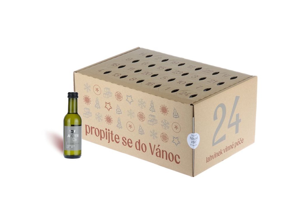Adventní kalendář z vinařství Lahofer a Hanzel. Balení obsahuje 24 lahviček o objemu 0,195l.