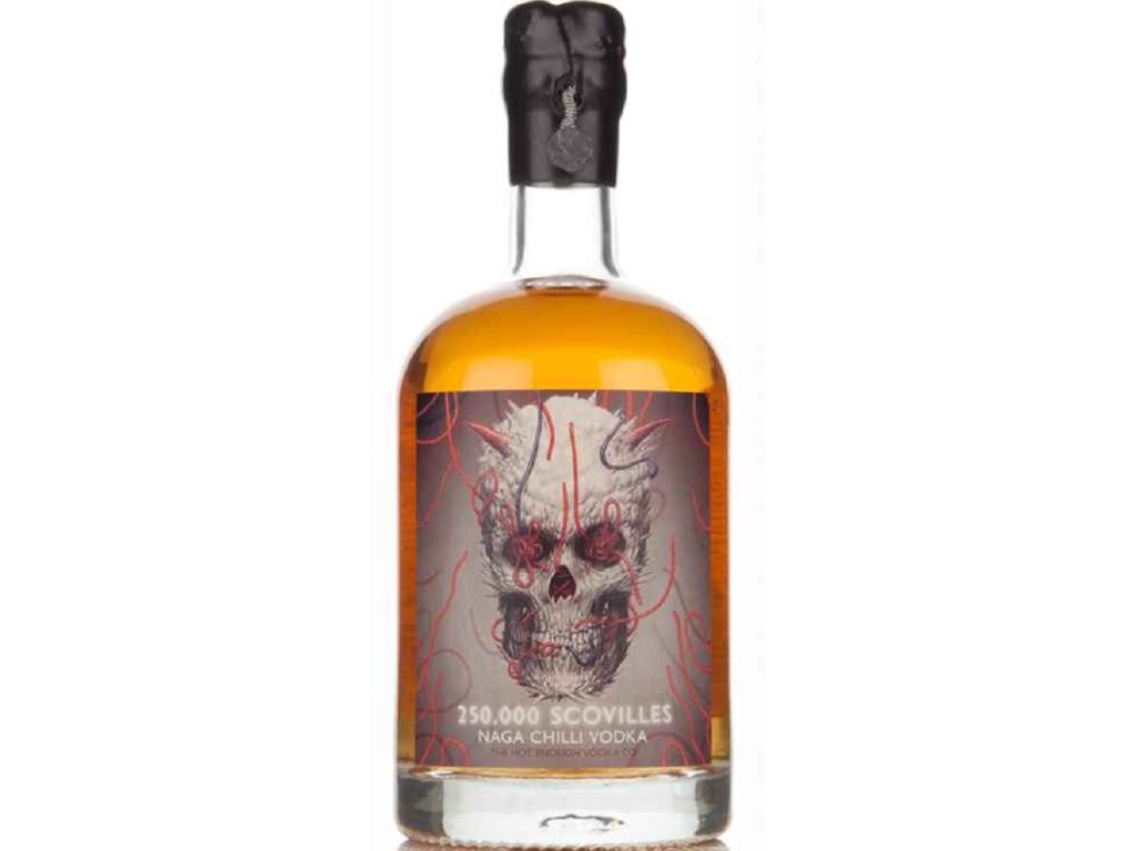 Zabalili jsme ho do pěkné těžké skleněné láhve s průmyslovým těsnicím drátem a bezpečnostní pečetí (na níž je znázorněna lebka se zkříženými hnáty). Abyste se dostali k láhvi, musíte se k ní doslova prostříhat nůžkami na drát, ale důrazně upozorňujeme, abyste to nedělali. Vlastně, tato nemožná 250 000 Scovilles vodka je chilli vodkou takovou příšernou, že vám nedoporučujeme si ji vůbec kupovat. Prosím, vypněte počítač a dejte si raději šálek čaje. Pokuste se zapomenout na to, co jste viděli.