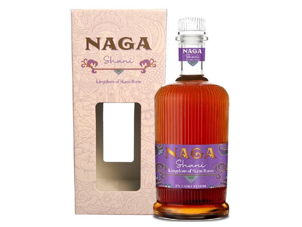Thajský rum Naga Shani 10y zrál 10 let v sudech po bourbonu a 18 měsíců "finišoval" v sudech po sherry Pedro Ximénez. Unikátně plná a čistá chuť rumu.