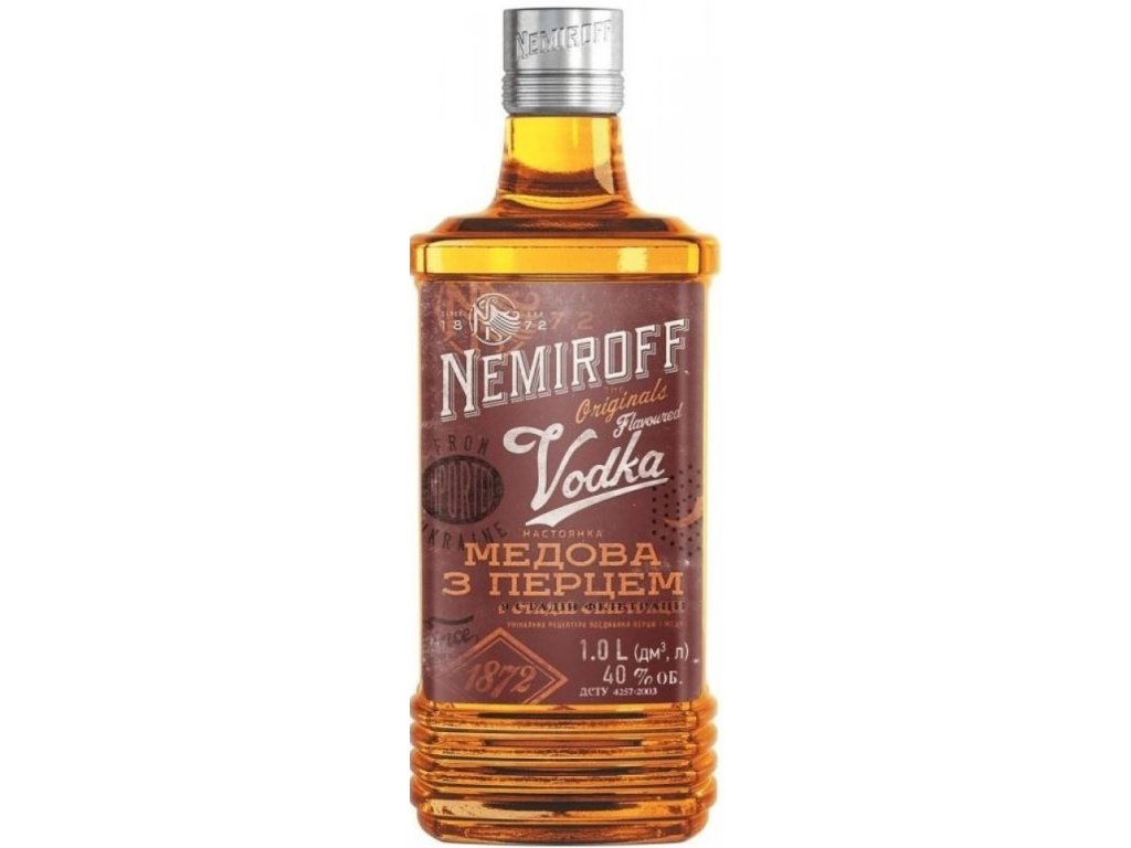 Ukrajinská vodka Nemiroff Honey Pepper je vyrobena podle 600-letého receptu. Obsahuje vyváženou směs bylinek, přírodního medu a koření. Pikantnost příznivě kontrastuje s jemnými medovými akcenty, přičemž od prvního doušku vytváří výbušnou vlnu bohaté chuti a zanechává v ústech jemný závěr. Při výrobě se používají pouze prvotřídní suroviny.