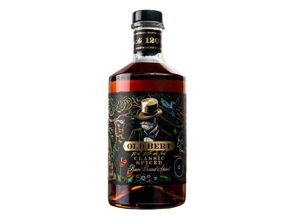 Old Bert Classic Spiced Recipe No. 120 je prvotřídní lihovina vyrobená z jamajského rumu. Míchá se s kořením, včetně perské limetky, vanilky, skořice, hřebíčku, kardamonu, zázvoru a zrnek pepře. Old Bert Spiced Recipe No. 120 se zaoblenou chutí rumu, koření a karamelu si nejlépe vychutnáte, když ho podáváte jednoduše na ledu s kolou, tonikem nebo zázvorovým pivem a s plátky čerstvého pomeranče nebo limetky.