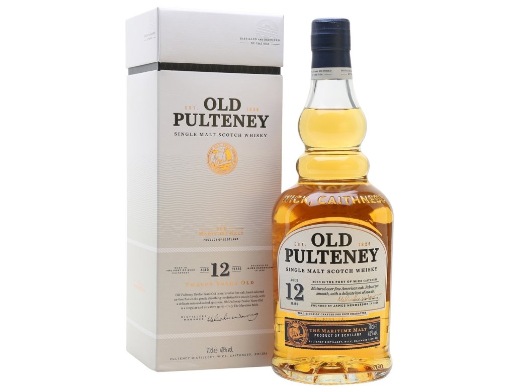 Old Pulteney, slad je sušen pouze na horkém vzduchu, tím pádem je zcela bez nakouření, zraje v ručně vybraných sudech po americkém bourbonu. Naprosto "nepřehlédnutelná" Old Pulteney 12-cti letá whisky je v základní nabídce z palírny Old Pulteney. Velmi populární Highland whisky, sladké citrusové plody se slabou vůní mořského vzduchu. Získala nejvyšší cenu ve své kategorii: the World Whisky Awards 2010.