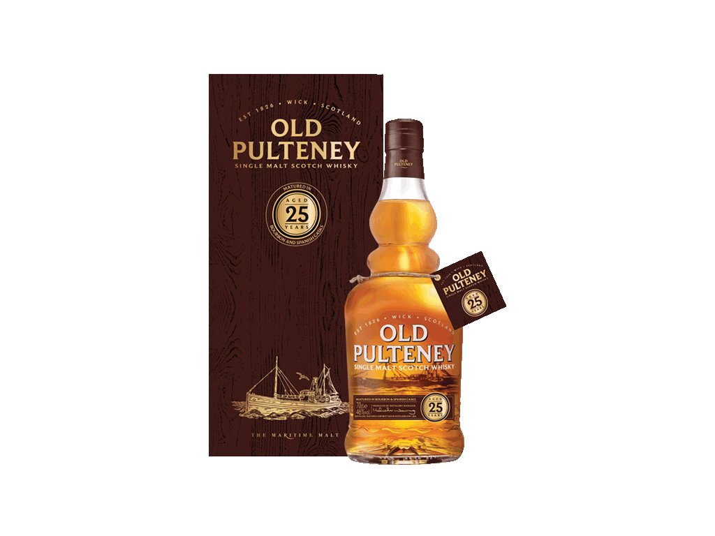 Old Pulteney je limitovaná špičková whisky určitého stáří. Tentokrát značka představuje 25 let starou hubičku stáčenou 46% alkoholem. Unikátní skotský single malt byl uveden na trh v říjnu 2017 jako náhrada za 17 a 21letý. Nabízí extrémně vyzrálé a bohaté chutě, včetně akordů hořké čokolády, medu, jablek a pomerančové kůry. Destilát zraje 22 let v dubových sudech po bourbonu a poslední 3 roky dozrává v sudech po sherry.