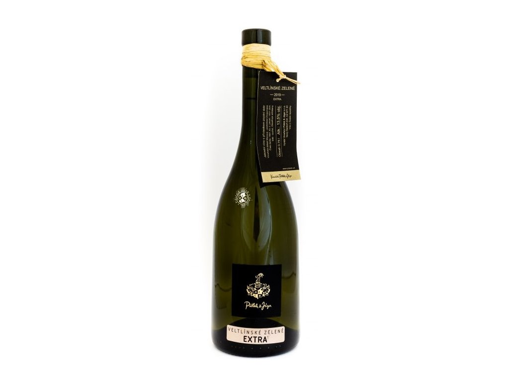 Veltlínské zelené Extra - vinařství Piálek & Jäger. Suché bílé jakostní víno s přívlastkem pozdní sběr, ročník 2019. Vinařská oblast Morava, podoblast Znojemská, vinařská obec Vrbovec a Hoštěradice , viniční trať Šác, Volné pole.