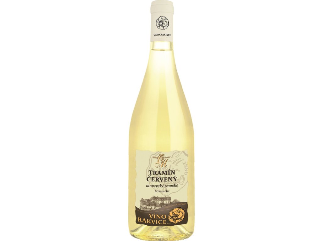 Tramín červený Víno Rakvice. Moravské zemské víno polosuché. Vinařská oblast Morava.