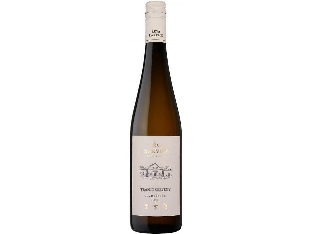 Tramín Červený - vinařství Réva Rakvice. Odrůdové bílé víno s přívlastkem pozdní sběr, polosuché. Ročník 2022.