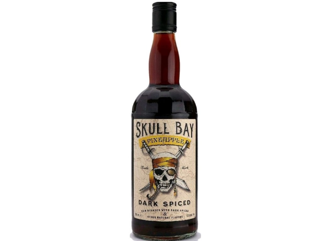 Skull Bay Pineapple Dark Spiced Rum je hnědě zbarvený kořeněný rum z Karibiku. Základem tohoto rumu je Skull Bay Dark Spiced který je dochucen ananasem.Ochutnáte pikantní chuť se sladkým podtónem ananasu.