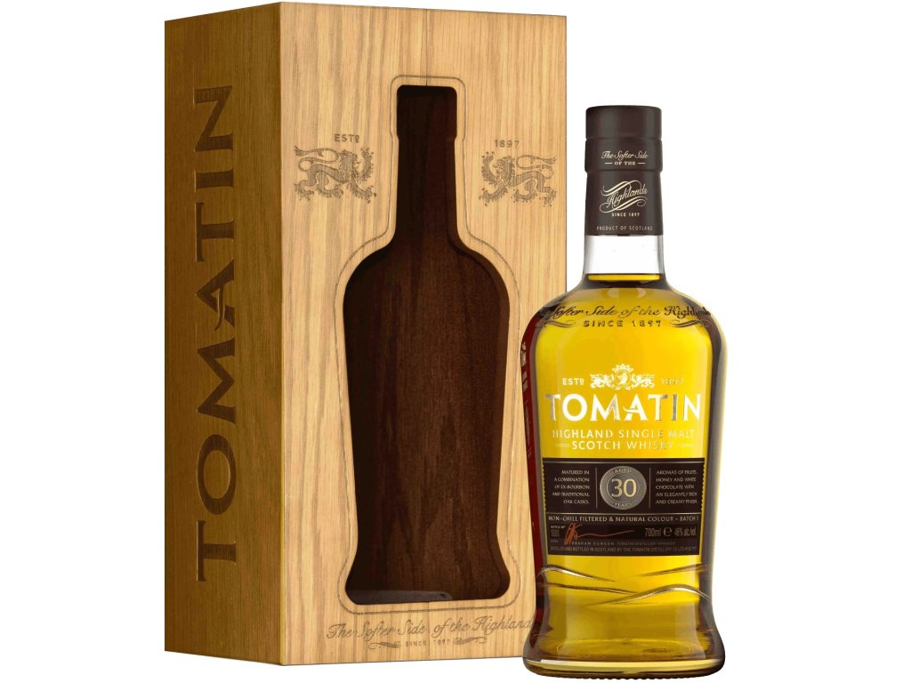 Tomatin 30yo je ultra-prémiová skotská single malt whisky. Název dává tušit, že strávila plných 30 let v sudech po bourbonu. Ve vůni nás uvítá zralé ovoce, med a bílá čokoláda, v chuti najdeme tóny tropického ovoce, vanilkového krému a vzácného koření. Závěr je dlouhý, komplexní a elegantní. Tomatin 30yo je skutečně vzácná whisky se zajímavým investičním a sběratelským potenciálem.