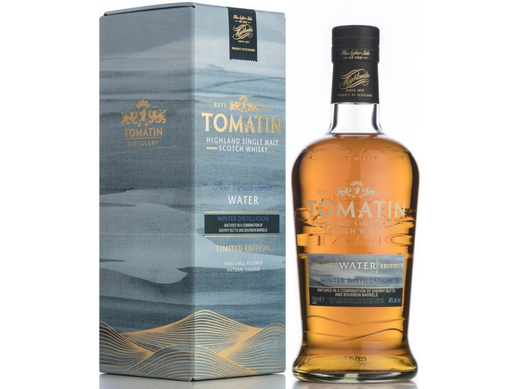 Tomatin Five Virtues Water představuje přirozeně čistou a měkkou vodu ze spalování Alt-na-Frith. Celoročně, je to zdroj vody, který běží přímo přes areál lihovaru. Toto vydání záměrně využívá zimního destilovaného ducha, kde konečný aroma obohacuje snížený kontakt s našimi měděnými destilačními zařízeními. Na světe je pouze 6000 kusů.