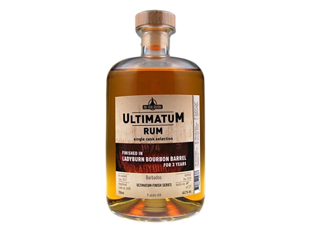 Ultimatum Rum Single Cask Selection Barbados 8 let Finished in a Ladyburn Bourbon Barrel je barbadoský rum stáčený holandským nezávislým stáčečem van Weesem. Tento barbadoský rum byl přelit v červenci 2017 do sudu Ladyburn ex-bourbon sudu (č. 2605) po dobu 3 let. Byl lahvován v prosinci 2020 na 40,2 % ABV jako limitované vydání v počtu 227 lahví.Doplňkové parametry