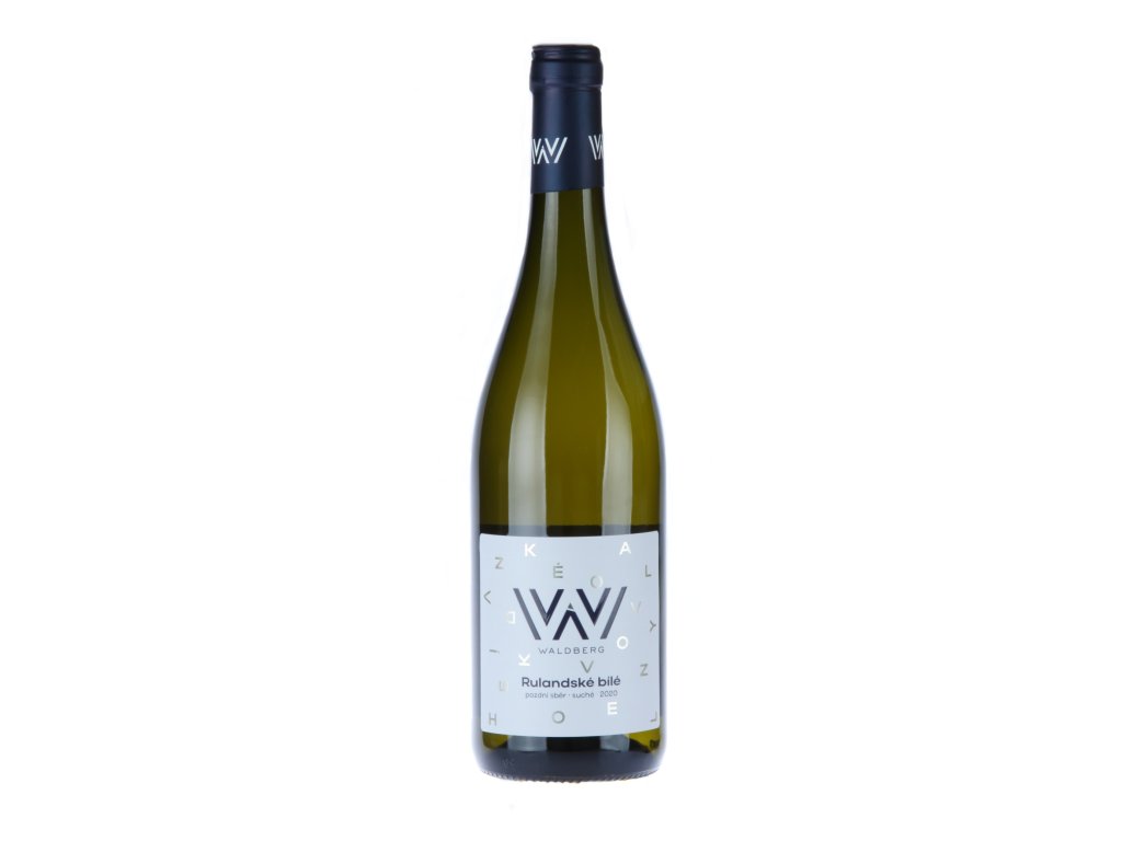 Rulandské Bílé - vinařství Waldberg. Jakostní suché bílé víno s přívlastkem pozdní sběr, ročník 2020.
